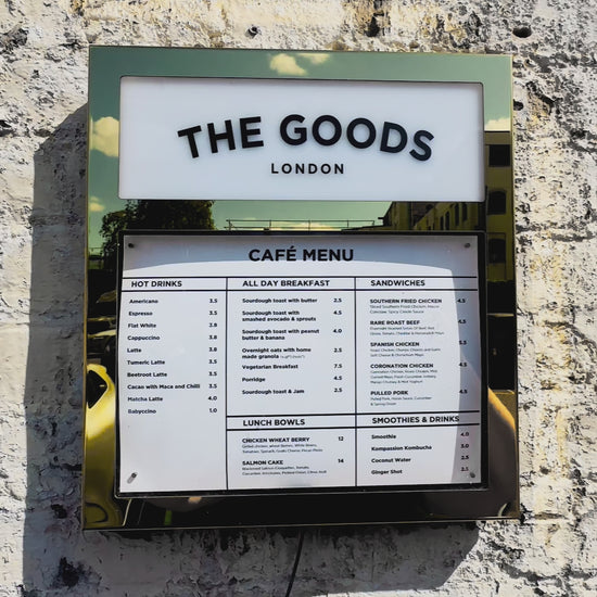 Unsere schwarzen Menühüllen eignen sich hervorragend für Cafés, Bars, Restaurants und Hotels. Beleuchtete Option mit Niederspannungs-LEDs, die sehr sparsam im Betrieb sind und eine Lebensdauer von bis zu 40.000 Stunden haben. Ausgestattet mit einer abschließbaren Tür mit zwei Schlüsseln.